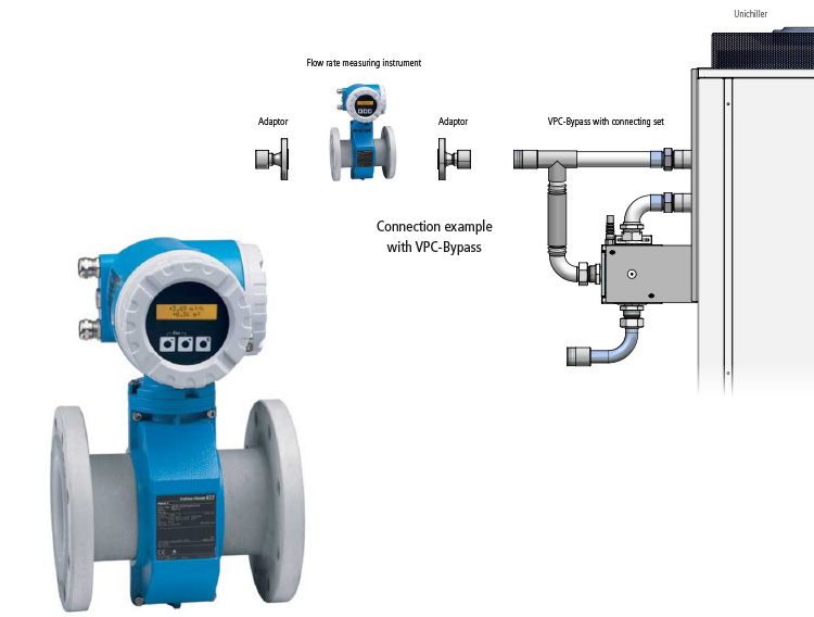 Durchflussmengenmesser zum Einbau in den Temperierkreislauf zur Messung und Regelung der Durchflussmenge. Die Durchflussmenge wird direkt am Huber-Temperiergerät angezeigt und kann zudem über die digitalen Schnittstellen (USB, RS232, LAN und optional RS485, Profibus) abgefragt werden. Auch eine Regelung der Durchflussmenge ist möglich, hierzu wird ein Temperiergerät mit integriertem VPC-Bypass oder ein externer VPC-Bypass als Zubehör benötigt.